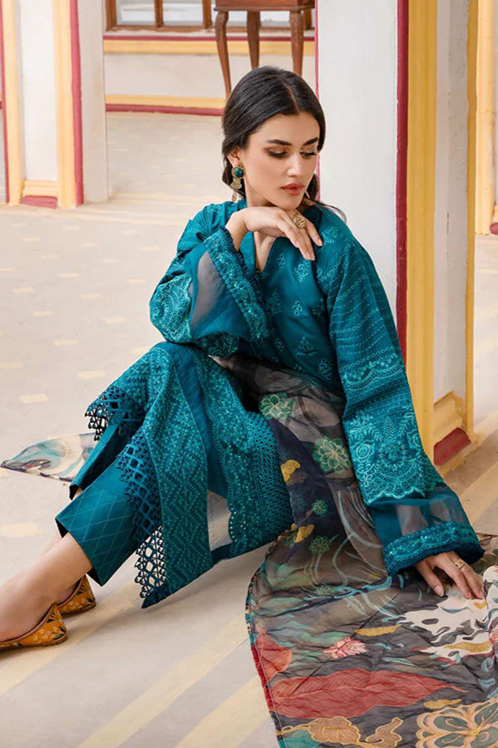 BATIK - 3PC LAWN EMBROIDERED SHIRT WITH KHAADI NET PRINTED DUPATTA AND TROUSER - HZG1564