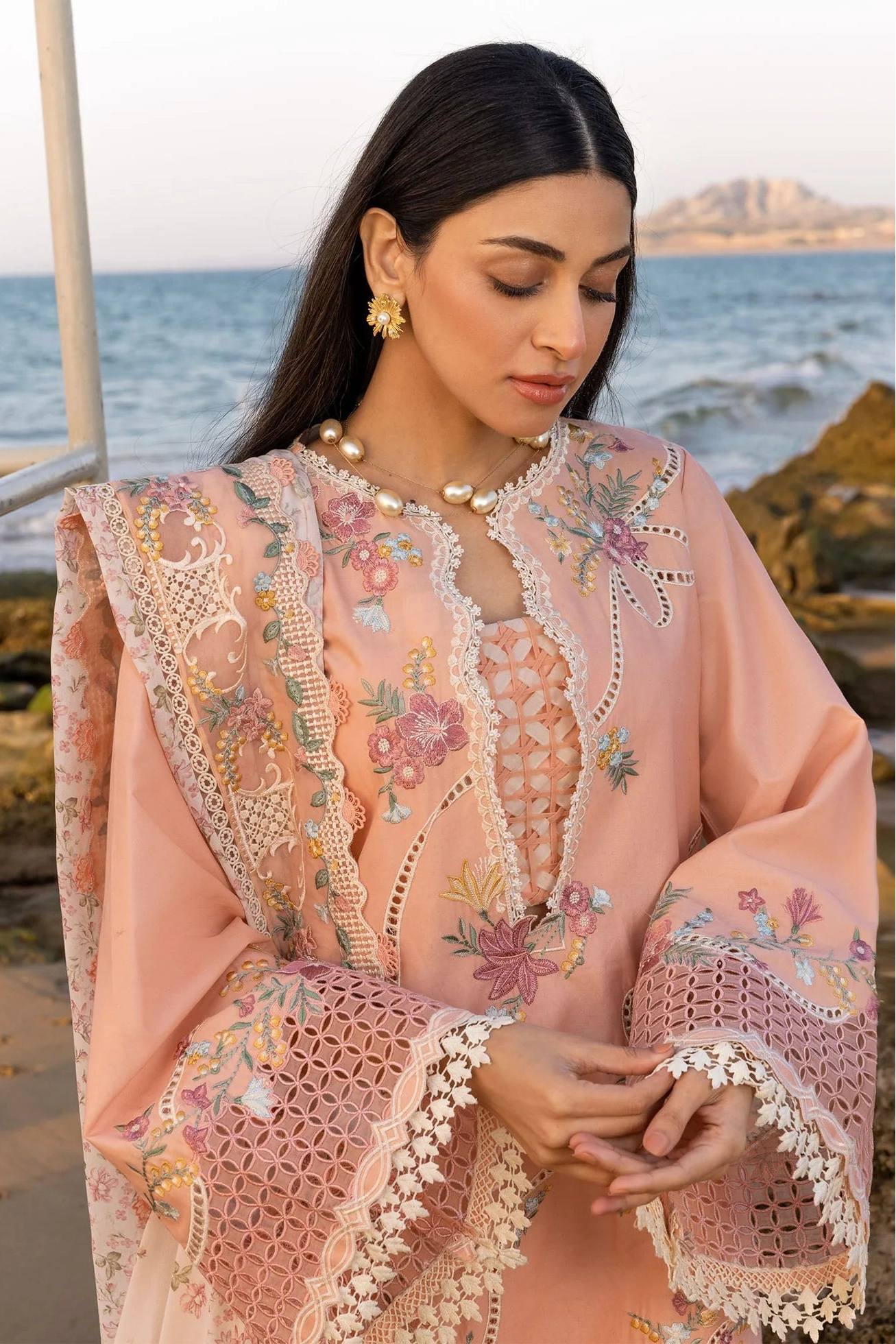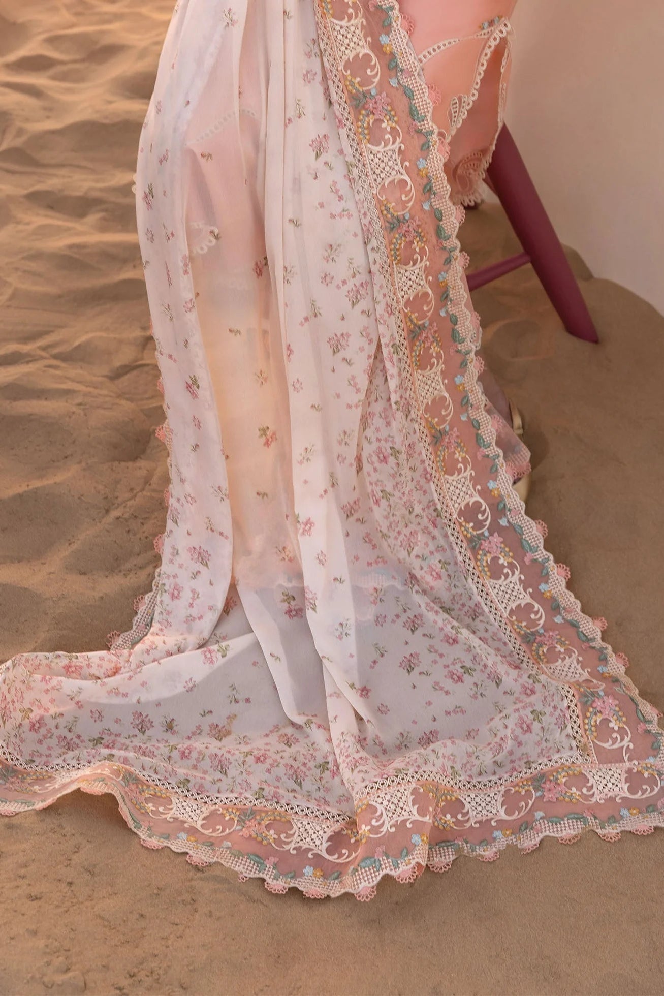 CRIMSON - 3PC CHIKANKARI LAWN EMBROIDERED SHIRT WITH CHIFFON PRINTED DUPATTA AND TROUSER - HZG2680