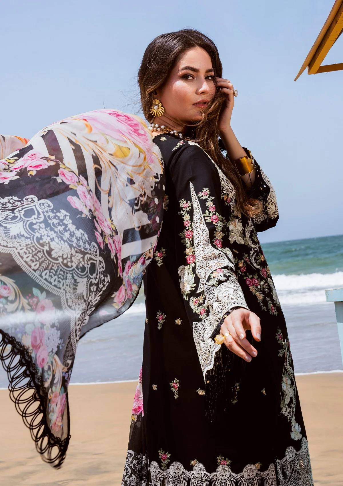 ELAF - 3PC LAWN EMBROIDERED SHIRT WITH CHIFFON PRINTED DUPATTA AND TROUSER - HZG2770