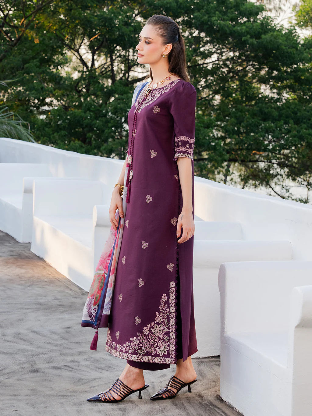 IZEL - 3PC LAWN EMBROIDERED SHIRT WITH CHIFFON PRINTED DUPATTA AND TROUSER - HZG2852