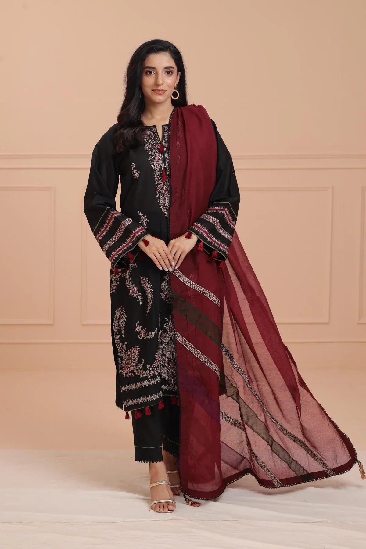 JAZMIN - 3PC LAWN EMBROIDERED SHIRT WITH COTTON NET DUPATTA AND TROUSER - HZG2214