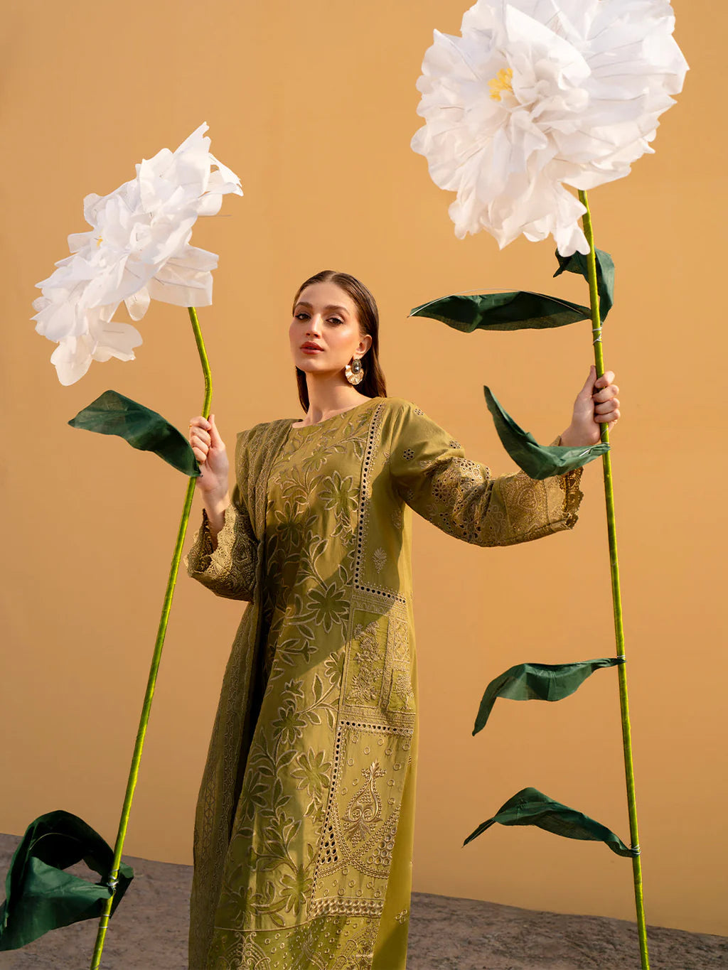 MAHNUR - 3PC LAWN LASERCUT EMBROIDERED SHIRT WITH KHADDI NET EMBROIDERED DUPATTA AND TROUSER - HZG2733