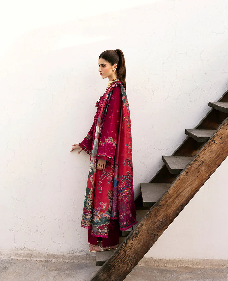 REPUBLIC WOMENSWEAR - 3PC DHANAK EMBROIDERED SHIRT WITH TWILL PRINTED SHAWL AND TROUSER - HZU2484