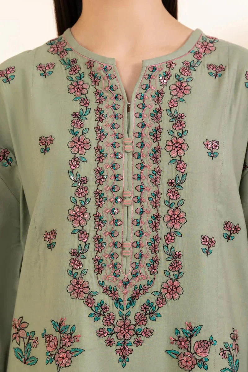 SAPPHIRE - 3PC LAWN EMBROIDERED SHIRT WITH MANAAR PRINTED DUPATTA AND TROUSER - HZG2066