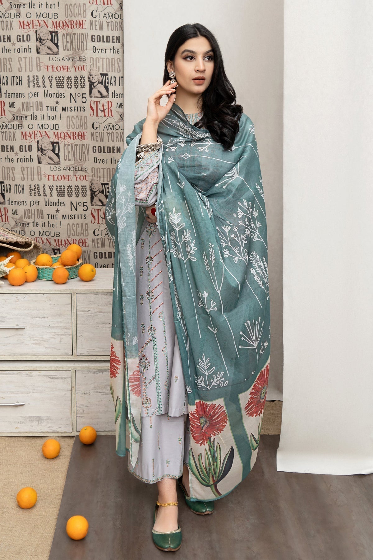 URGE - 3PC LAWN EMBROIDERED SHIRT WITH DIAMOND PRINTED DUPATTA AND TROUSER - HZG1639